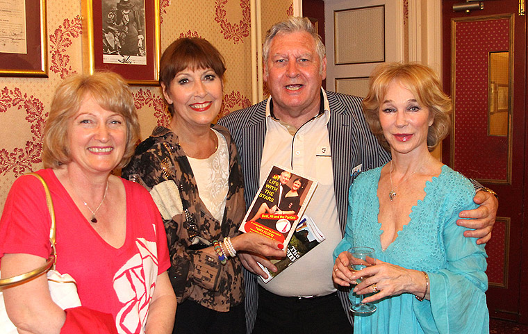 Showing off a copy of 'My Life With The Stars', in which they both appear, are singer-actress Anita Harris and actress Shirley Anne Field, together with Tony and his wife and fellow author Heather Flood (left). Photo by Peter Turner.